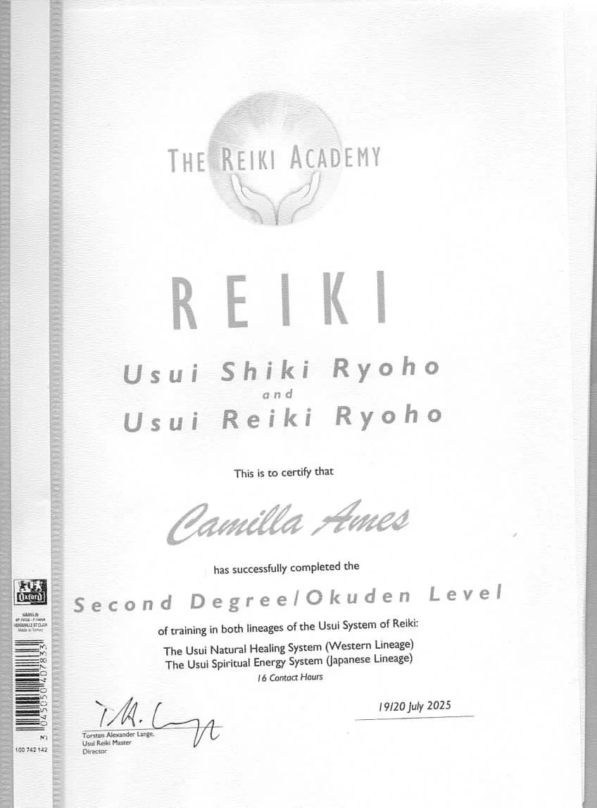 I am currently working towards a Reiki Diploma, accredited by the CNHC and aligned with professional standards for complementary healthcare practitioners. This training supports practice in a range of settings, including private practice, hospices, charities, and healthcare environments, including alongside NHS-supported services.